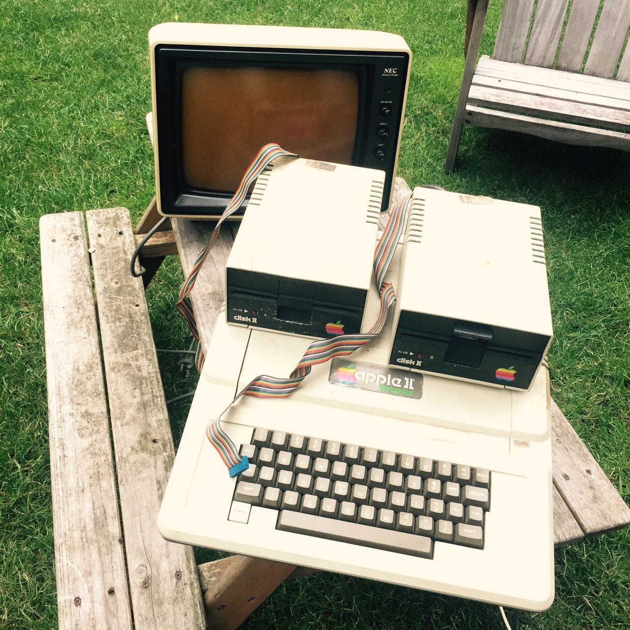 The Apple II line, with Apple IIe und IIc (1984) and the Apple II Europlus (1979).